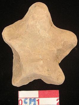 | Description / विवरण | A star shaped terracotta archaic human figurine with pinched nose, out stretched stumpy arms, wide bridged stumpy legs, phallus indicated, treated with red wash, handmade. |