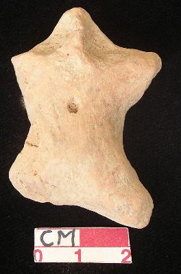 | Description / विवरण | A defaced terracotta archaic human figurine with short head, punched eyes, pinched nose, left arm is mutilated but right arm is broken, punched navel, short wide bridged stumpy left leg but right leg is broken, dull red colour, handmade. |