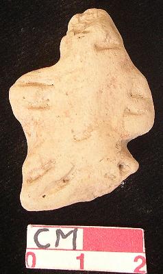 | Description / विवरण | A terracotta archaic human figurine with short head, punched eyes, pinched nose and mouth, short out stretched stumpy arms with two incised lines in each, short wide bridged stumpy right leg with two incised lines but left leg is broken, red colour and handmade. |