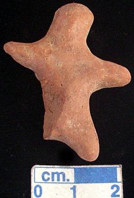 | Description / विवरण | A star shape archaic terracotta human figurine with round head, red, short out stretched arms, short wide bridged stumpy legs but the right one is broken, treated with red wash, handmade. |