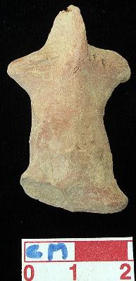 | Description / विवरण | A terracotta archaic human figurine, red, pinched nose, very short out stretched arms, short legs with the right one is broken, treated with red wash, handmade. |