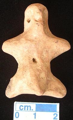 | Description / विवरण | An archaic human terracotta figurine, red, pinched nose, slit mouth, short out stretched arms, shrot wide bridged stumpy legs, punched eyes, punched navel, handmade. |
