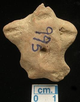 | Description / विवरण | Terracotta archaic human figurine, damaged head, dull red, slit mouth, short out stretched arms with one deep incised line on each, punched navel, both legs are damaged, handmade. |