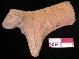 | Description / विवरण | Terracotta animal figurine, red, the shout bears horns, the hind portion and right leg are missing. A perforation on each side of the neck. |
