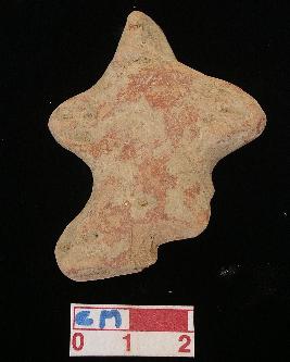 | Description / विवरण | An archaic human terracotta figurine, red, treated with red slip, pinched nose and slit mouth, short out stretched arms and legs with two incised lines in each, punched eyes, handmade. |