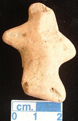 | Description / विवरण | An archaic human terracotta figurine, red, punched nose, pinched eyes, slit open mouth, short out stretched arms and legs with one incised line in each, handmade. |