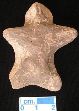 | Description / विवरण | A terracotta archaic human figurine with round head, grey colour, pinched nose, short wide out stretched arms, short wide bridged legs, devoid of any surface treatment, handmade. |