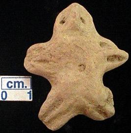 | Description / विवरण | A terracotta archaic human figurine with round head, red colour, pin hole eyes, pinched nose, slit mouth, short out stretched arms with two incised line in each, short wide bridged stumpy legs with two incised line in each, treated with red wash, handmade. |