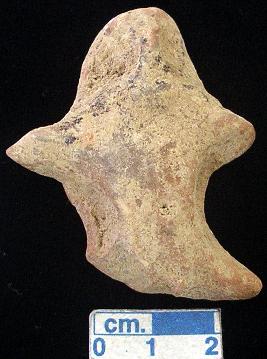 | Description / विवरण | An archaic human terracotta figurine, red, pinched nose, slit mouth, short out stretched arms, short wide streched leg with right leg is damaged, punched eyes, punched navel, handmade. |