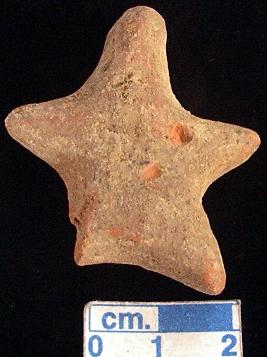 | Description / विवरण | An archaic human terracotta figurine, red, pinched nose, slit mouth, short out stretched arms, short wide stumpy legs but the right one is broken , punched eyes, punched navel, handmade. |