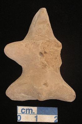 | Description / विवरण | A terracotta archaic human figurine with short head, punched eyes, pinched nose and slit open mouth, short out stretched stumpy right arm, other is broken, punched navel, short wide bridged stumpy legs, phallus indicated, dull red in colour. |