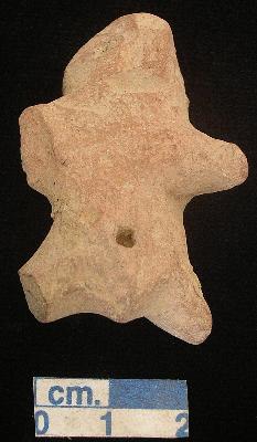 | Description / विवरण | A star shape archaic male terracotta figurine, red, pinched nose, open slit mouth,punched eyes, short out stretched arms the right one is broken, short wide bridged stumpy legs the right one is broken, punched navel, phallus indicated, treated with red wash, handmade. |