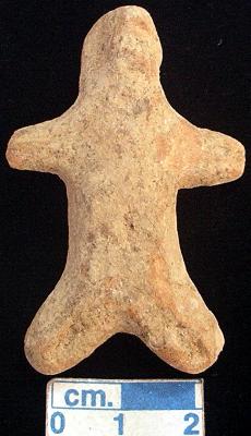 | Description / विवरण | An archaic human terracotta figurine, red, pinched nose, slit mouth, short out stretched arms with one incised line in each, short wide stumpy legs with one incised line in each, punched eyes, punched navel, handmade. |