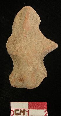 | Description / विवरण | A terracotta archaic male figurine with red colour, round head, punched eyes, pinched nose, pointed stretched stumpy arms but the right arm is broken, both legs are broken, phallus indicated and treated with red wash, handmade. |