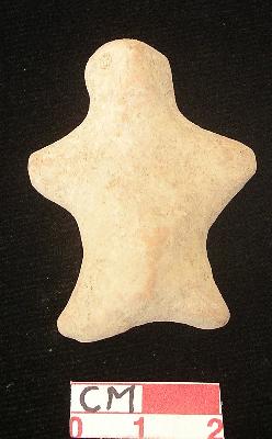 | Description / विवरण | A star shaped terracotta archaic human figurine, with round head, red, hand made, pinched nose, open slit mouth, short stumpy arms, short stumpy legs. |