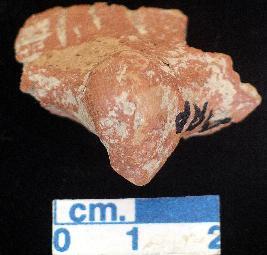 | Description / विवरण | A very little fragment of broken bird head, red in colour, two or three vertical lines appear on it. |