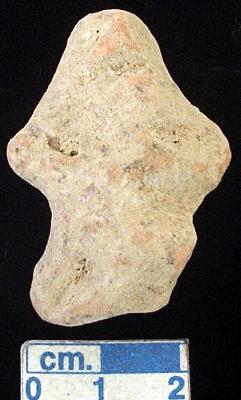 | Description / विवरण | An archaic human terracotta figurine with round head, red, pinched nose, pin hole eyes, slit mouth, short out stretched arms, shrot wide bridged stumpy legs but left leg is broken , punched navel, handmade. |