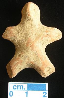 | Description / विवरण | A terracotta archaic human figurine with round head, red colour, pin hole eyes, pinched nose, short out stretched stumpy arms and pinched on tip, short wide bridged stumpy legs, treated with red wash, handmade. |