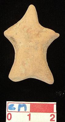 | Description / विवरण | A tiny star shaped terracotta archaic human figurine, with round head, red, hand made, pinched nose, open slit mouth, short out stretched stumpy arms, punched navel, short stumpy legs, traces of red slip on exterior. |