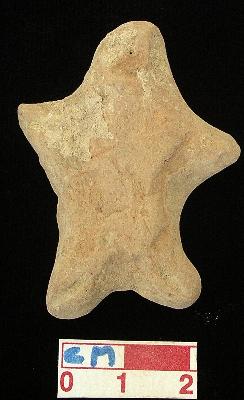 | Description / विवरण | A star shaped terracotta archaic human figurine, with round head, dull red, hand made, pinched nose, traces of open slit mouth, short out stretched stumpy arms, short wide bridged stumpy legs, treated of red wash. |
