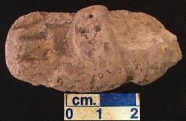 | Description / विवरण | Fragment of a terracotta human leg, greyish in colour, small in size, fingers made with deep incised lines, bears applique anklet with multiple pin hole decorations, broken from knee. |