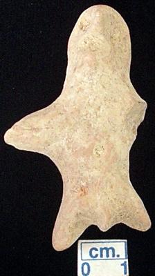 | Description / विवरण | An archaic male terracotta figurine, red in colour, pinched nose, pin hole eyes, slit mouth, short out stretched arms but some damaged, shrot wide bridged stumpy legs, punched navel, treated with red wash, phallus indicated, handmade. |