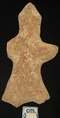 | Description / विवरण | A terracotta archaic human figurine with round head, red, pin hole eyes, pinched nose, broken arms and legs, treated with red wash, handmade. |