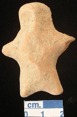 | Description / विवरण | A terracotta archaic human figurine with round and flat at the top head, pinched nose and slit mouth but the eyes are not clear due to hard clay patina, short out stretched stumpy arms of which left is slightly damaged, short wide bridged stumpy legs, treated with red wash, handmade, prepaired by well levigated clay. |