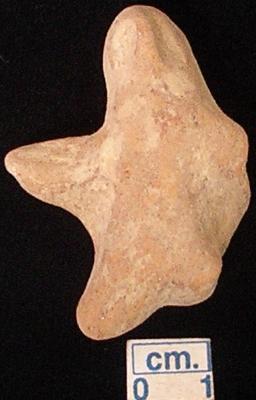 | Description / विवरण | An archaic human terracotta figurine, red in colour, pinched nose, pin hole eyes, slit mouth, short out stretched arms, shrot wide bridged stumpy legs but right one is broken, punched navel, treated with red wash, handmade. |
