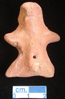 | Description / विवरण | A terracotta archaic human figurine with round head, pin hole eyes, pinched nose, slit open mouth, short out stretched stumpy arms, punched navel, short wide bridged stumpy legs, phallus indicated, red color. |