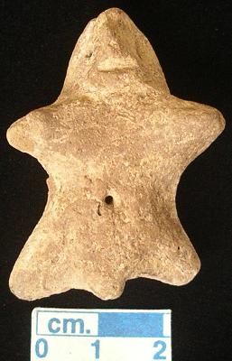 | Description / विवरण | A archaic male terracotta figurine with rounded head, red, slit mouth, pinched nose, short out stretched arms, shrot wide bridged stumpy legs, punched eyes, punched navel, phallus indicated, handmade. |