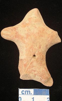 | Description / विवरण | A terracotta archaic human figurine with small head, punched eyes, pinched nose, slit mouth, out stretched stumpy right arm is intact with two incised lines whereas left is damaged, punched navel, wide bridged stumpy left leg is slightly damaged whereas right is missing, red slipped, handmade. |