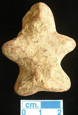 | Description / विवरण | An archaic human terracotta figurine, red, pinched nose, split mouth, short out stretched arms, shrot wide bridged stumpy legs, punched eyes, handmade. |