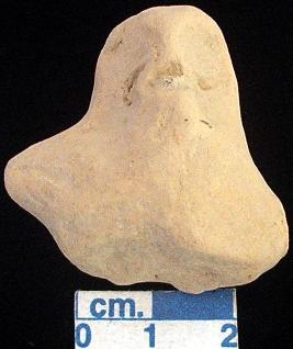 | Description / विवरण | A terracotta archaic human figurine, red, pin hole eyes, pinched nose, open mouth, short out stretched arms, lower portion is broken, treated with red wash, handmade. |