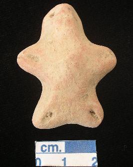 | Description / विवरण | An archaic human terracotta figurine, red, pinched nose and slit open mouth, long neck, short out stretched arms and legs with one incised line, punched eyes, handmade. |