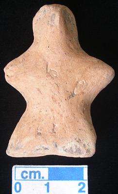 | Description / विवरण | A terracotta archaic human figurine, red, pinched nose, short out stretched arms, both short legs are joined each other , treated with red wash, handmade. |