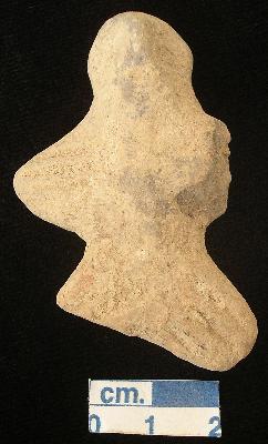 | Description / विवरण | A star shaped terracotta archaic human figurine, with round head, dull red, hand made, pinched nose, traces of open slit mouth, short out stretched stumpy arms with two inciced lines in each left one broken, short wide bridged stumpy legs right one broken, devoid of any surface treatment. |