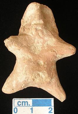 | Description / विवरण | An archaic male terracotta figurine with round head, dull red, pinched nose, pin hole eyes, slit mouth, short out stretched arms but the right one is slightly broken, punched navel, short wide bridged stumpy legs, phallus indicated, treated with red wash, handmade. |