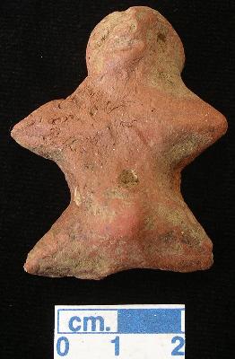 | Description / विवरण | A terracotta archaic male figurine with round head, pinched nose, punched eyes, slit mouth, out stretched stumpy arms, short wide bridged stumpy legs, punched navel, phallus indicated, traces of red slip. |