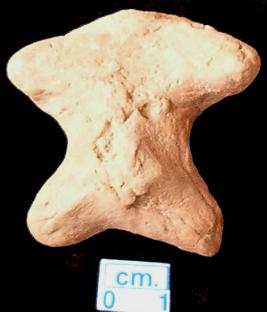 | Description / विवरण | A terracotta archaic male figurine with damaged head, red, pinched nose, short out stretched arms, short wide bridged stumpy legs, phallus indicated, treated with red wash, handmade. |