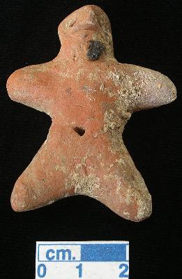 | Description / विवरण | A star shaped terracotta archaic human figurine, flat on top round head, punched eyes, pinched nose and slit open mouth, short out stretched stumpy arms, punched navel, short wide bridged stumpy legs, red colour, handmade. |