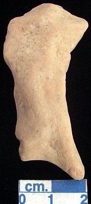 | Description / विवरण | A terracotta archaic human figurine with broken head, red, both short out stretched arms are broken, short bridged stumpy legs but the right one is broken, treated with red wash, handmade. |