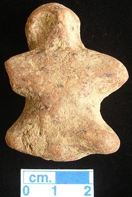 | Description / विवरण | An archaic human terracotta figurine, red, pinched nose, short out stretched arms , shrot wide bridged stumpy legs, punched eyes, handmade. |