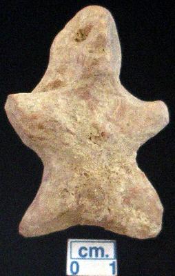 | Description / विवरण | An archaic terracotta male figurine with round head, red, pinched nose, pin hole eyes, slit mouth, short out stretched arms, shrot wide bridged stumpy legs, phallus indicated, treated with red wash, handmade. |