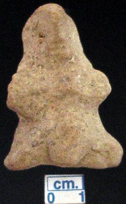 | Description / विवरण | An archaic terracotta male figurine with round head, red, pinched nose, pin hole eyes, slit mouth, short out stretched arms but some damaged, shrot wide bridged stumpy legs, phallus indicated, treated with red wash, handmade. |