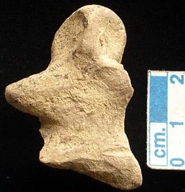 | Description / विवरण | An archaic human terracotta figurine, red, pinched nose, slit mouth, short out stretched arms and left one is damaged, short wide bridged stumpy legs and right one is damaged, punched eyes, handmade. |