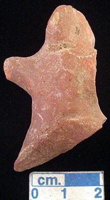 | Description / विवरण | An archaic terracotta human figurine with round head, red, pinched nose, pin hole eyes, slit mouth, short out stretched arms but the left one is broken, short wide bridged stumpy legs but the left one is broken, treated with red wash, handmade. |