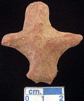 | Description / विवरण | An archaic terracotta human figurine with round head, red, pinched nose, short out stretched arms, both legs are broken, treated with red wash, handmade. |