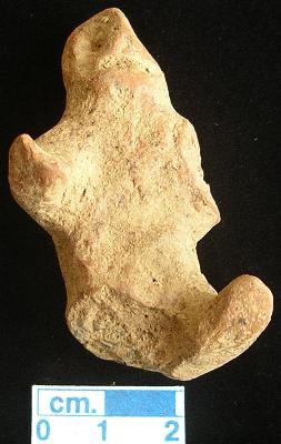 | Description / विवरण | An archaic human terracotta figurine in sitting position, red, pinched nose, short out stretched arms , short stumpy leg with incised line, left leg is damaged, punched eyes, handmade. |