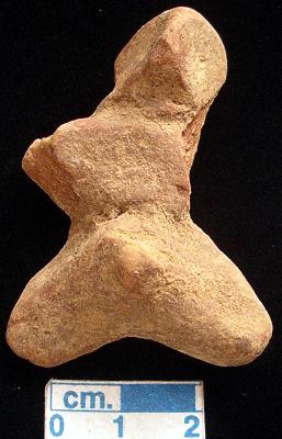 | Description / विवरण | An archaic male terracotta figurine, red, pinched nose, slit mouth, short out stretched arm and left arm is damaged, short wide bridged stumpy legs, punched eyes, punched navel, phallus indicated, handmade. |